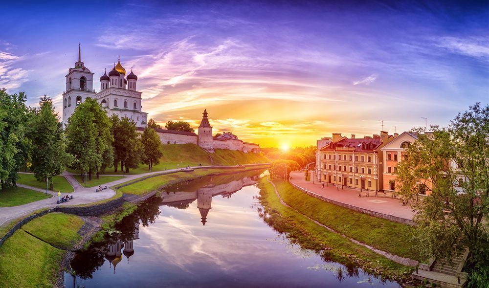 Место моления княгини Ольги (левый берег реки Великой), панорамы старого города, набережные. Достопримечательности Среднего города: городские парки, храм Василия на Горке, театр, каменные купеческие палаты, парадные городские площади, памятник княгини Ольге и др. Осмотр крепостных стен Окольного города и памятников военной истории. Памятник Александру Невского и его дружине на горе Соколихе.