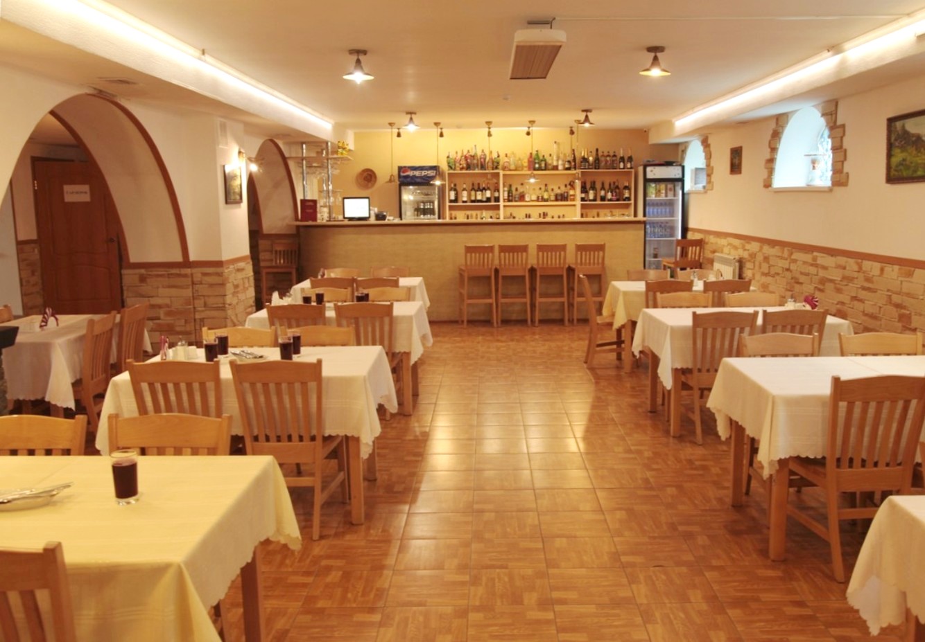 К услугам гостей бесплатный беспроводной доступ в сеть Internet (Wi-Fi) в номерах и ресторане отеля, бильярд, пункт проката велосипедов и туристского оборудования, сувенирный киоск и экскурсионный центр. В дневное время питание гостей организовано по предварительно утвержденному меню, вечером ресторан работает по меню "A-la carte". Алкогольные и безалкогольные напитки можно приобрести в баре ресторана. В ресторане имеется уютный банкетный зал на 24 места, где можно отпраздновать семейный или корпоративный праздник.