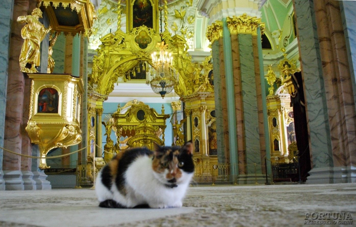 Параллельно с крепостью Петр I распорядился строить и деревянную церковь, а в 1712 было начато возведение каменного храма. В 1731 он был переименован в собор во имя первоверховных апостолов Петра и Павла, который стал усыпальницей Романовых, поэтому действующие императоры и императрицы перед отъездом из города посещали собор, чтобы попросить благословения у родителей. Петропавловский собор входит в ансамбль крепости и составляет ее изюминку. Достопримечательностью собора является высокая колокольня со смотровой площадкой. Венчает колокольню шпиль с крестом и фигурой парящего ангела. Во время царствования Екатерины II от молнии, ударившей в шпиль, загорелся собор. И после ремонта было принято решение конструкцию дополнить громоотводом. В XIX в. деревянные крепежные конструкции заменили на металлические из-за ветхости, и высота собора прибавила 16 м, составив целых 122,5 м. Таким образом собор стал самым высоким зданием Санкт-Петербурга. Также на башне установлены куранты, которые полюбились императору Петру I еще во время заграничных поездок. В целом весь Петропавловский собор создавался под веянием архитектуры Италии и севера Европы. В плане сооружение прямоугольной формы, увенчанное всего одним куполом. Экстерьер собора очень скромен, а интерьер, напротив, поражает своей помпезностью.