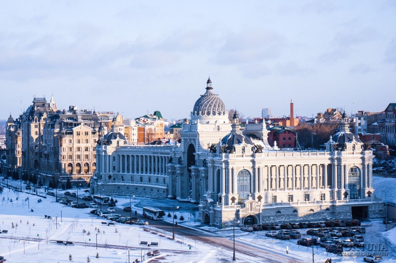 Главная достопримечательность города - Казанский Кремль, памятник всемирного наследия ЮНЕСКО. Это - официальная резиденция Президента Республики Татарстан и государственный музей-заповедник. Белокаменный Кремль - сердце древнего города, воплотившее в себе культуру запада и востока. Здесь взметнулись ввысь минареты главной мечети города Кул Шариф (посещение) и сверкают золотом купола старейшего православного Благовещенского собора. На территории крепости находится один из символов Казани - знаменитая «падающая» башня ханши Сююмбике.