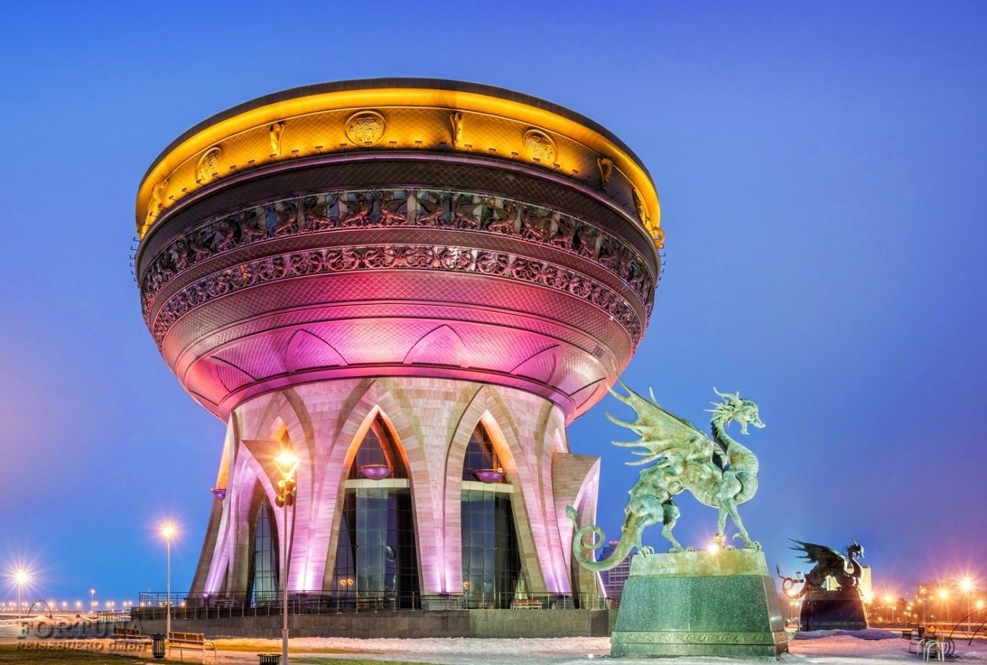 Посещение выставочно - зрелищного комплекса «Городская Панорама». Вас ждут экспозиции, посвященные Казани, ее архитектуре, истории и этапам развития. Вы совершите путешествие по лабиринтам улиц Старо-татарской слободы, на круговой видеопанораме в 360 градусов оживут старинные фотографии из жизни Казани. Вы можете почувствовать себя пассажиром старинного трамвая начала 20 века, посмотреть на город с высоты птичьего полета. На уникальных макетах предстанет Казань 16 в., Казань эпохи императоров и современная Казань. Каждое строение выполнено по отдельному проекту с индивидуальным чертежом фасада. Все макеты домов являются точной копией своих оригиналов.