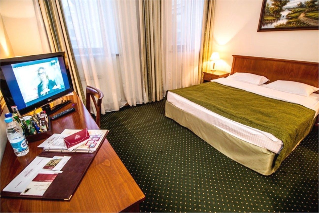 Оснащение в номере: полутораспальная кровать или две односпальные кровати, письменный стол, шкаф для одежды, телевизор со спутниковым телевидением, телефон с междугородней и международной связью, прикроватные тумбочки, санузел с ванной или душевой кабиной, туалетные принадлежности (шампунь, гель для душа), фен.