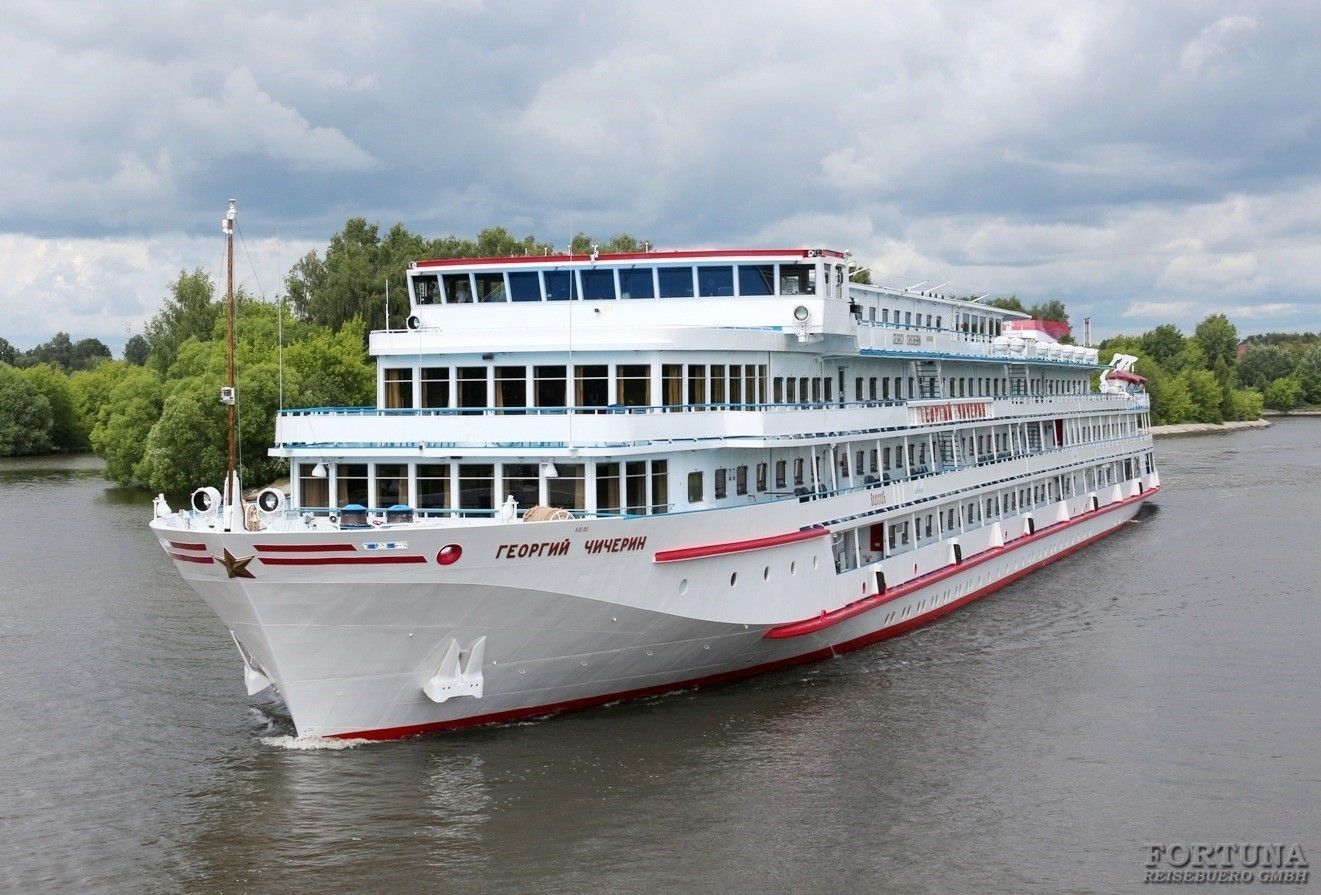 Добро пожаловать на четырехпалубный пассажирский теплоход «Георгий Чичерин», построенный в 1988 году в Германии.