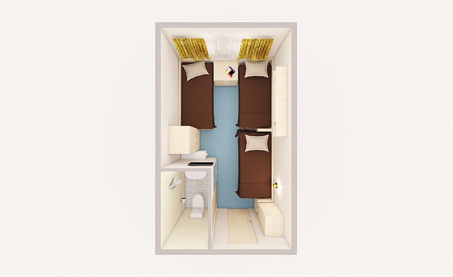 Трехместная каюта увеличенной площади со всеми удобствами, расположенная на нижней палубе.