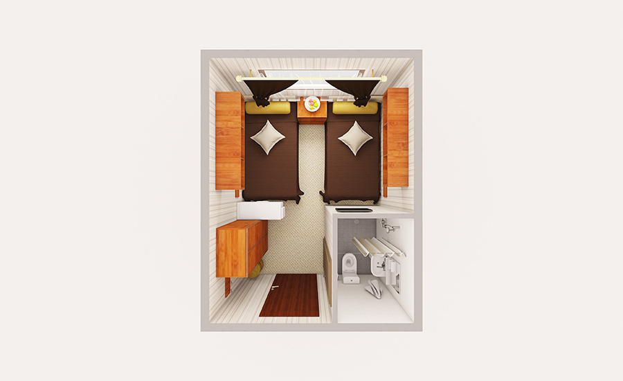 Двухместная каюта со всеми удобствами, расположенная на средней палубе. Каюта с эргономичным дизайном и современной отделкой.