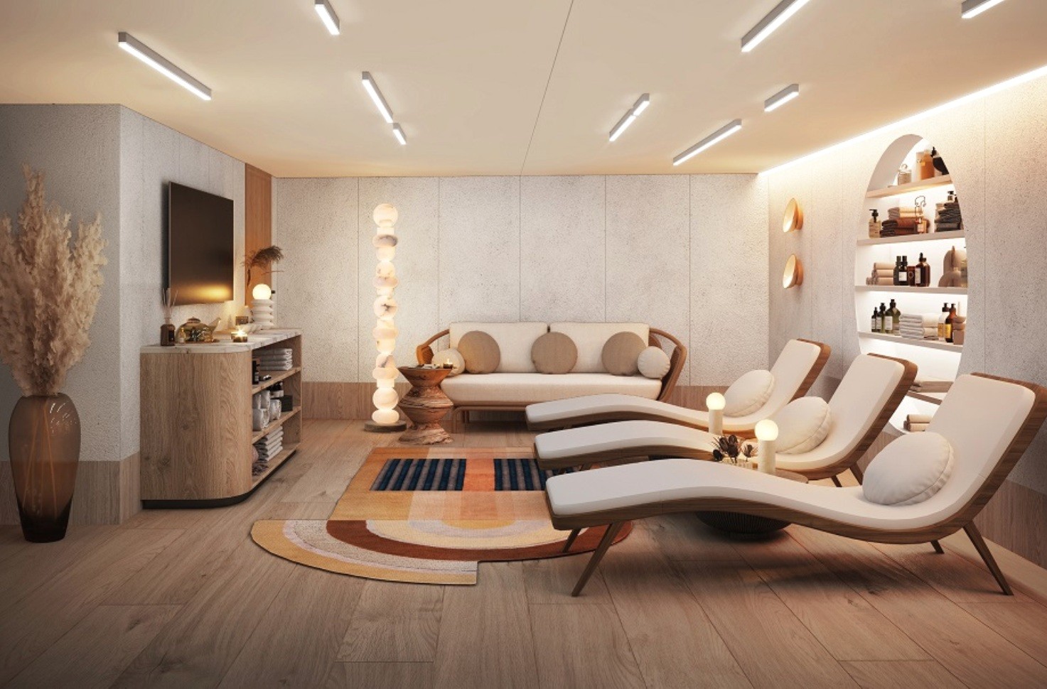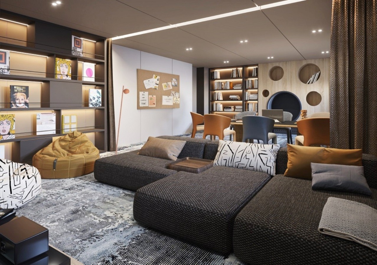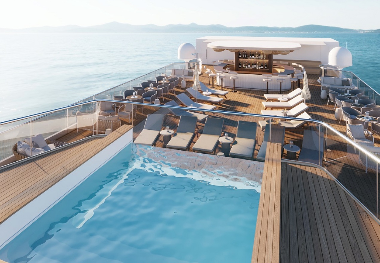На солнечной палубе расположен солярий с шезлонгами, пейзажный бассейн с подогревом, откуда открывается потрясающий вид на закат, а также многофункциональная релакс-зона с барной стойкой 360° . Гости смогут с комфортом принимать солнечные ванны, любоваться пейзажами или участвовать в интерактивных мероприятиях. Камерная лаундж-зона возле бара с мягкими диванами - воплощение безупречного стиля и совершенства. Здесь можно не только покупаться в бассейне под открытым небом и позагорать на мягких лежаках, но и насладиться освежающими коктейлями в перерывах между солнечными ваннами.