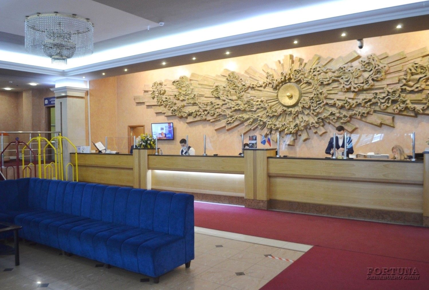Встреча с представителями фирмы в холле гостиницы с табличкой «ФОРТУНА», получение ваучеров на экскурсии.