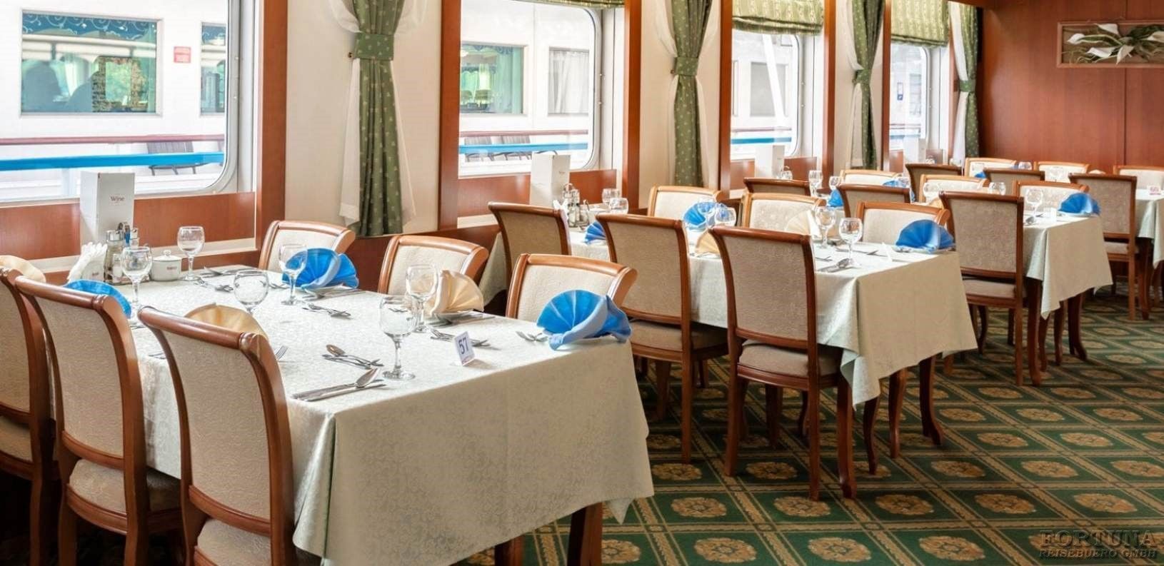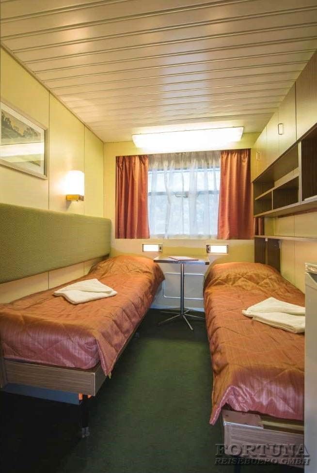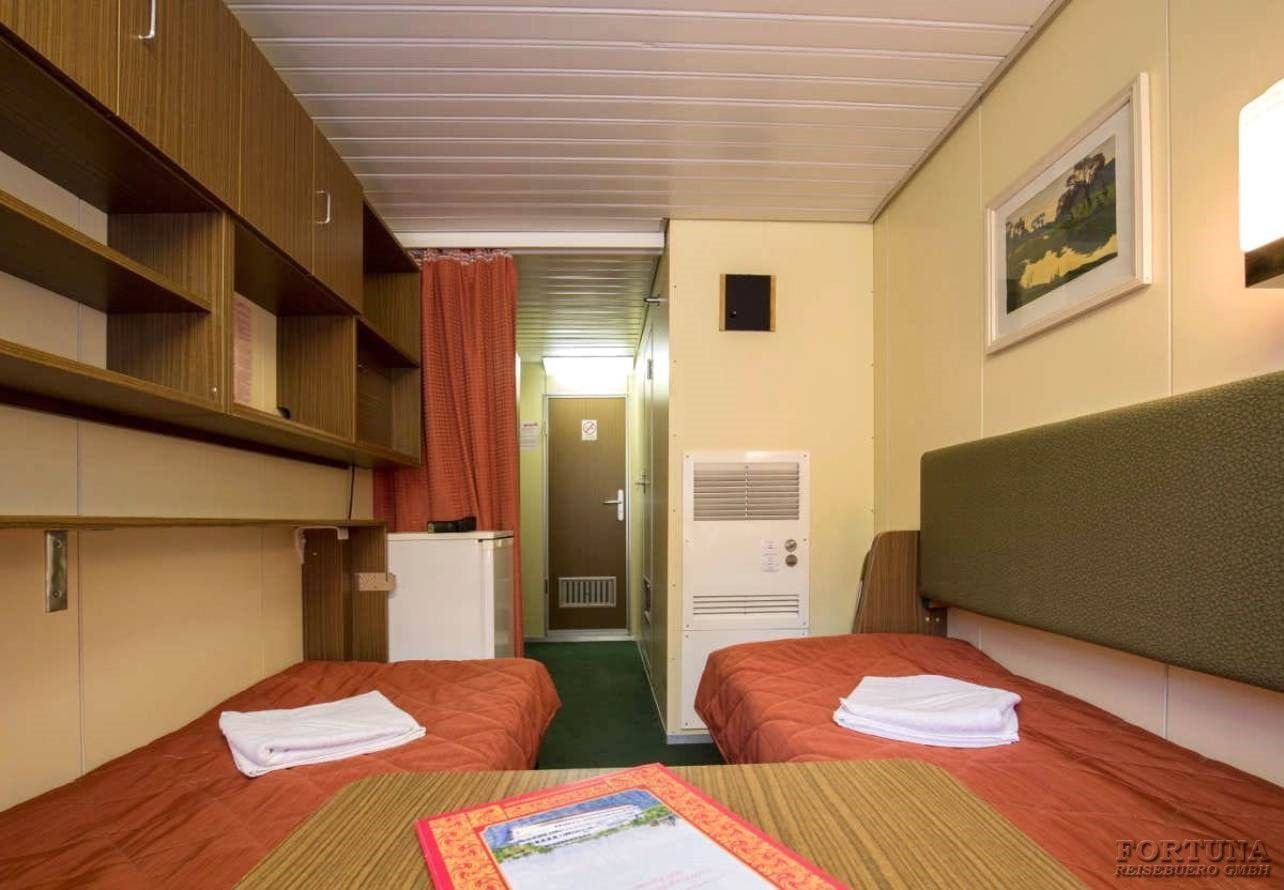 Отличительной особенностью теплохода является отсутствие двухместных двухъярусных кают.