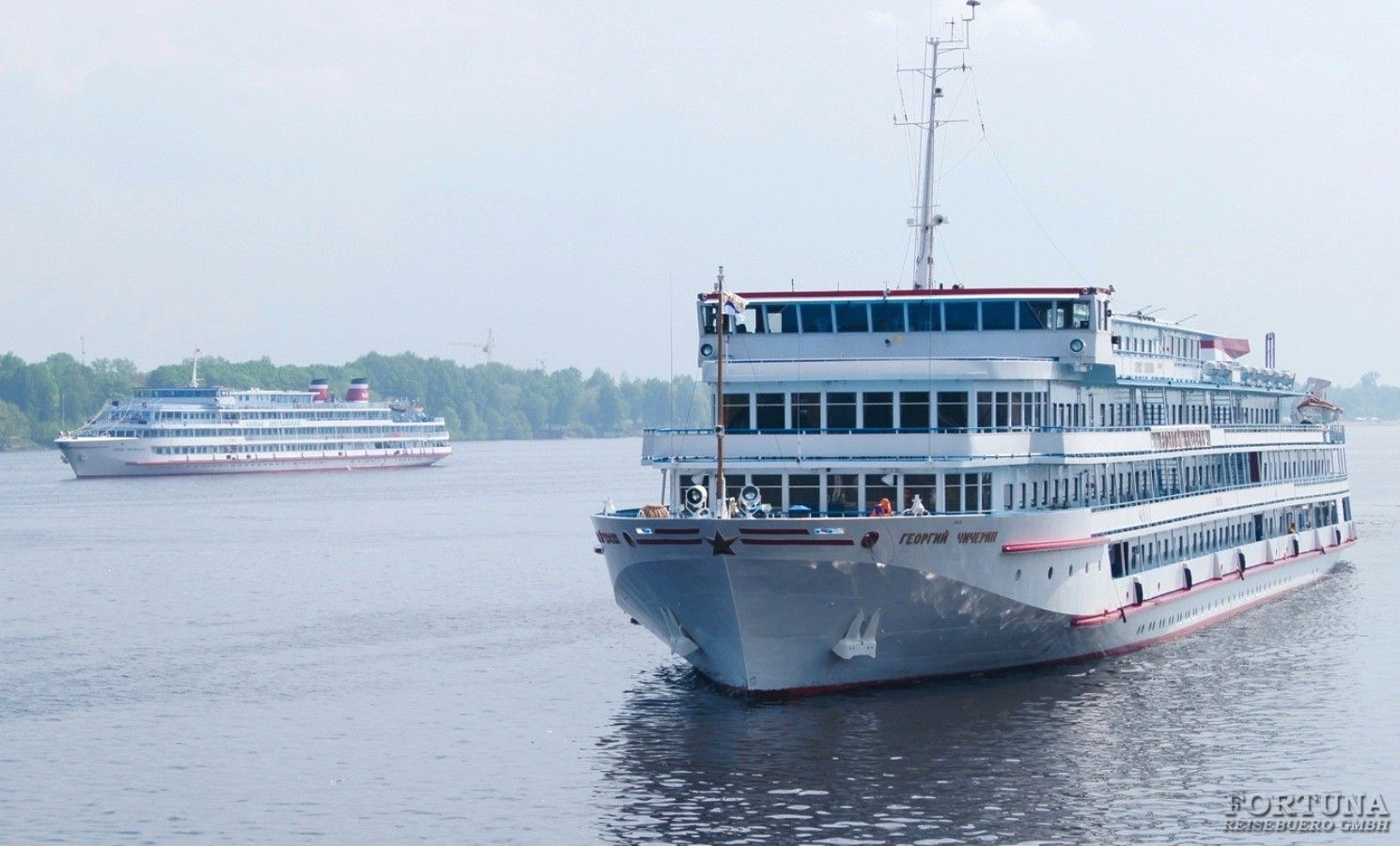 Теплоход "Георгий Чичерин" - комфортабельный четырехпалубный пассажирский речной теплоход проекта 302, построен в 1988 году в Германии. Теплоход оснащен современным навигационным оборудованием и развивает скорость до 26 км/ч. При осуществлении круизных рейсов теплоход принимает на борт до 286 пассажиров. Длина теплохода - 129 м, ширина теплохода - 16,7 м, осадка - 2,9 м.