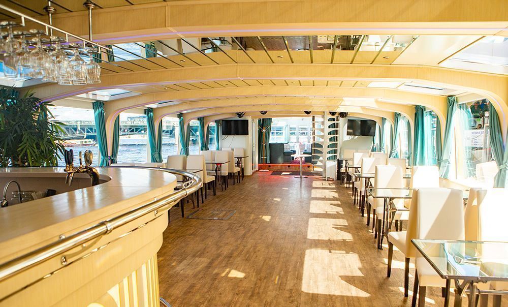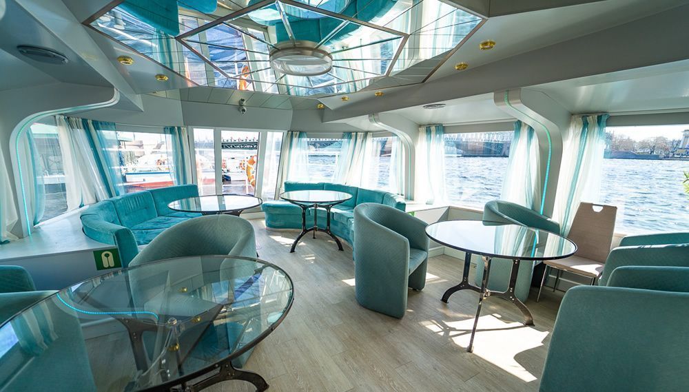 Дизайнерский двухпалубный теплоход-ресторан с открытой смотровой площадкой. В программе живая музыка, круиз по Неве и возможность совместить прекрасную водную прогулку и ужин в ресторане. Бокал шампанского в подарок каждому гостю.