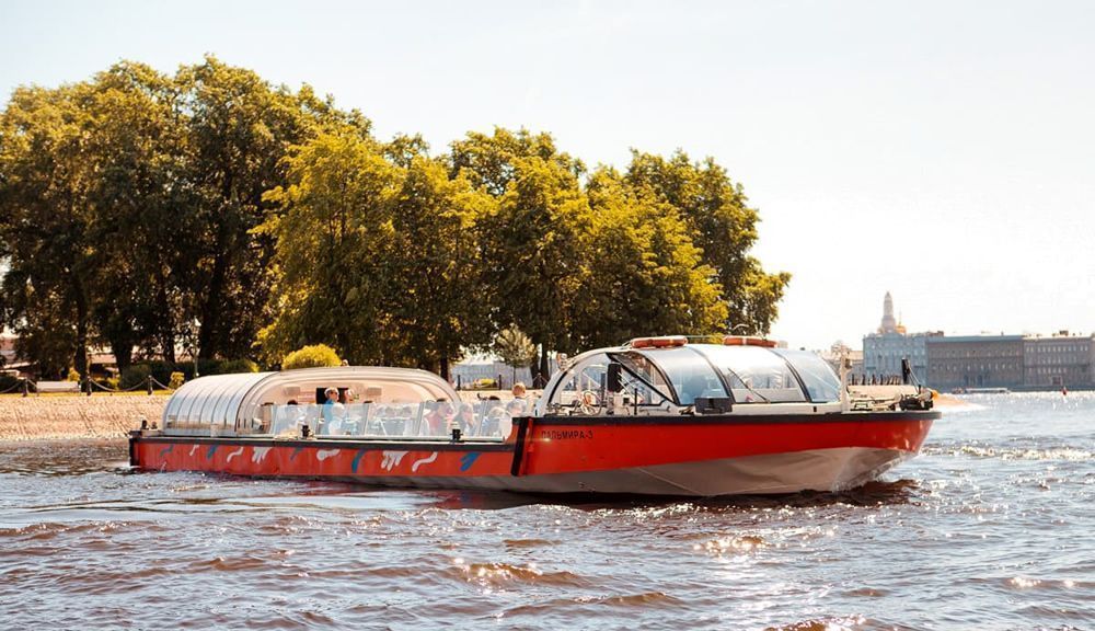 Теплоход-кабриолет уникальной конструкции – телескопическая складная крыша позволяет каждому гостю осматривать пространство с обзором в 360 градусов под открытым небом. Праздничная экскурсия по парадной Неве с гидом-экскурсоводом. Свободная рассадка, чтобы гости могли занять любые понравившиеся места. Бокал шампанского в подарок каждому гостю.
