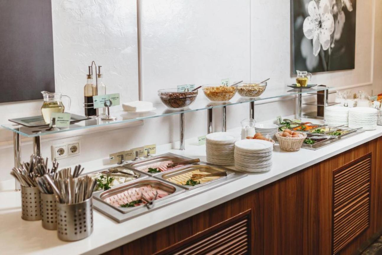 Питание в гостинице Сокол: В стоимость проживания входит завтрак "шведский стол" в кафе "Сокол". Помимо завтраков гости могут попробовать комплексные обеды и ужины, а также заказать блюда из меню A La Carte русской и европейской кухни. Недавно в кафе закончен ремонт.