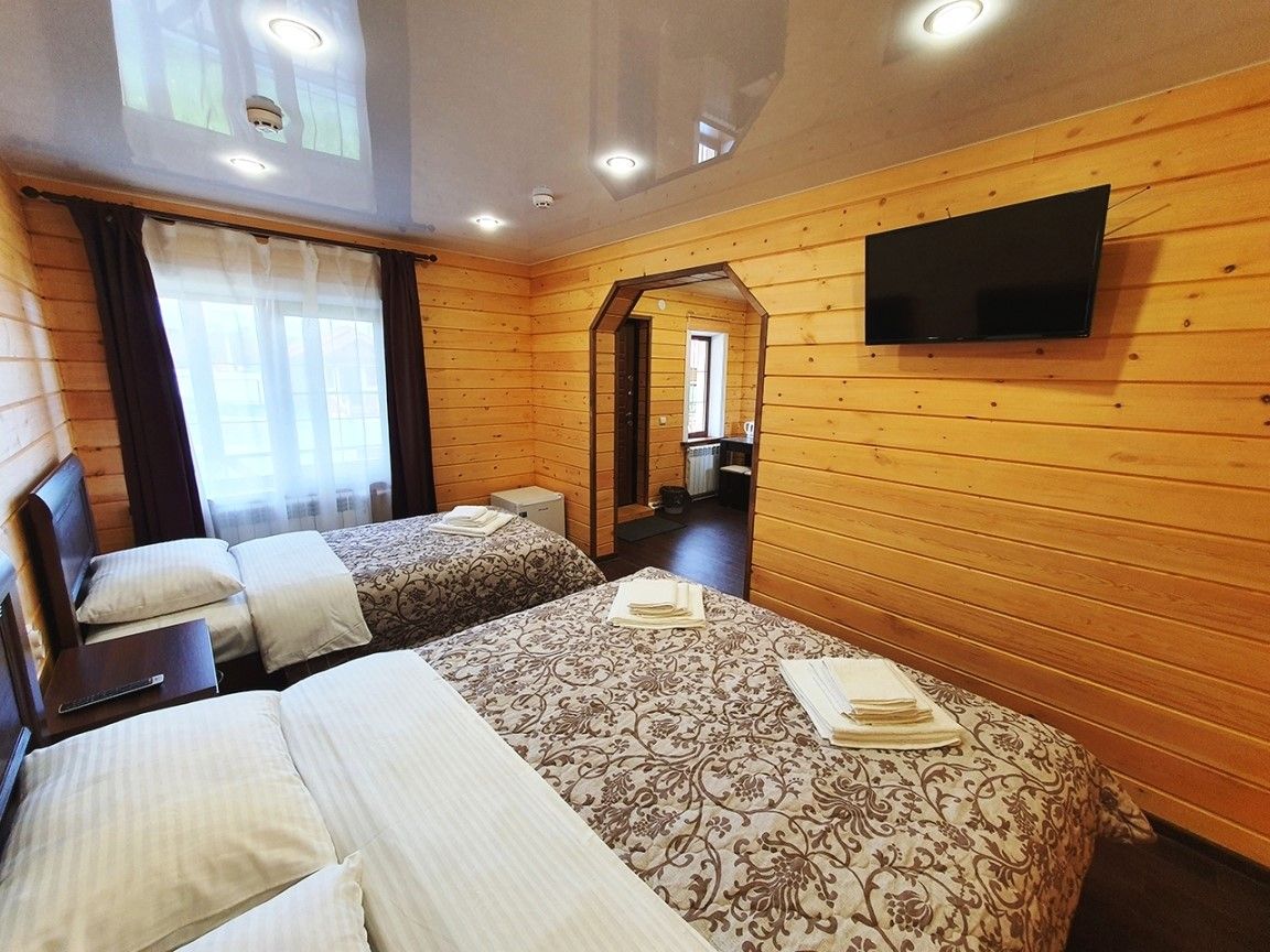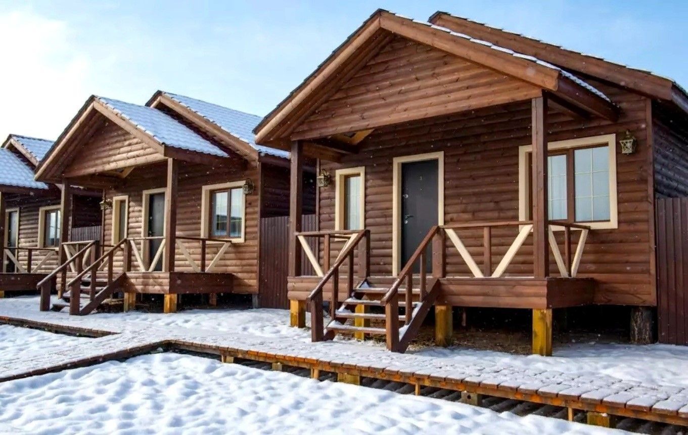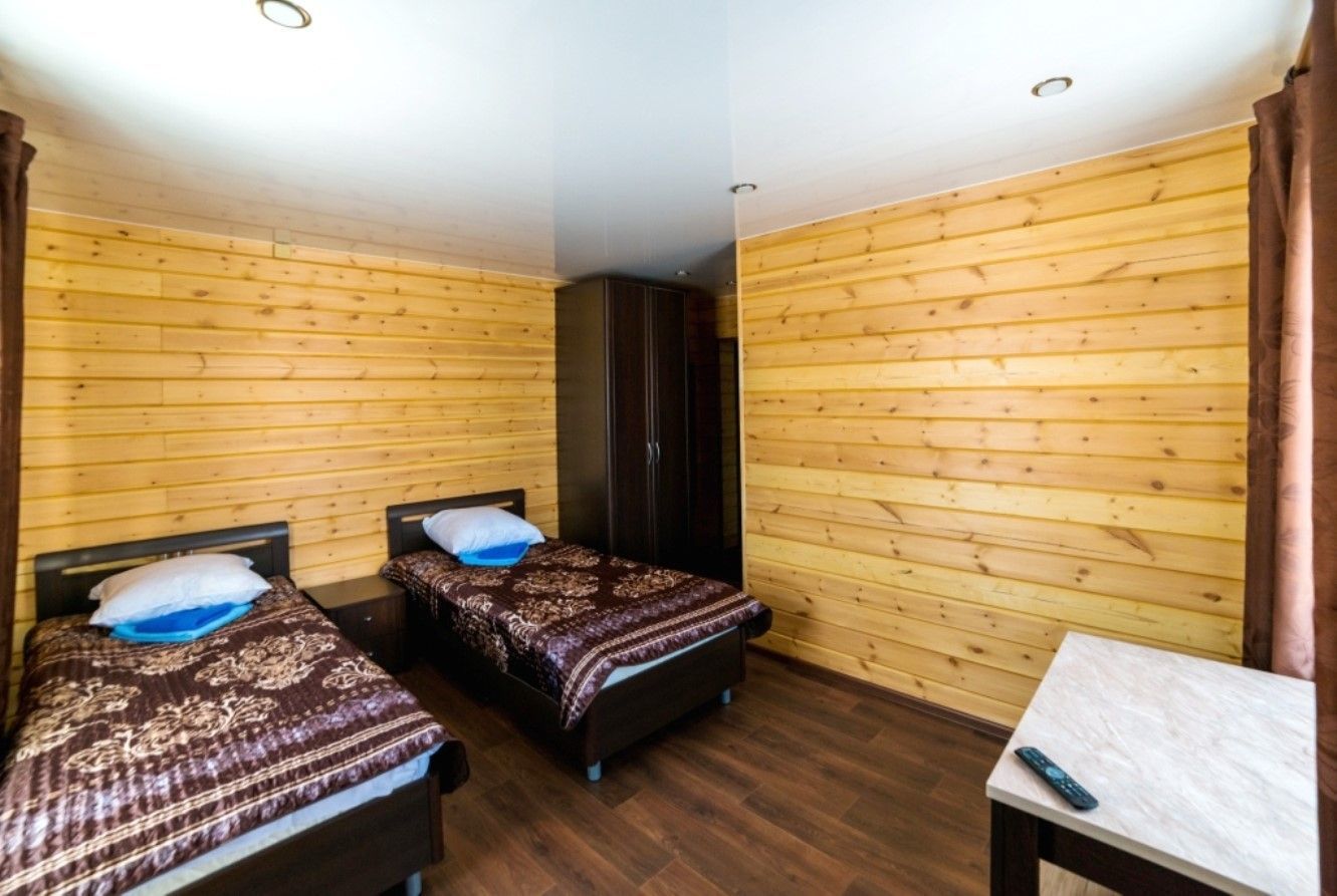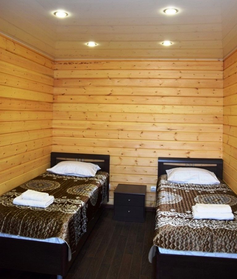 Размещение: отдельные благоустроенные домики-шале от 20 кв. м., с прихожей, ванной комнатой и спальней, вместимостью от 2 до 4 человек. Есть и комфортные 2-местные номера.
