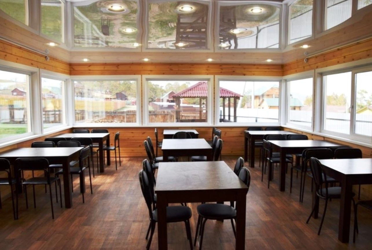 На территории базы находится просторный застекленный панорамный павильон на 30 мест с видом на Байкал и ольхонские леса. Отдых на Байкале у многих людей ассоциируется с местной кухней, изюминкой которой, являются блюда из омуля и сига. И здесь, именно на базе отдыха Шаманка рекомендуется их попробовать! Байкальское меню: преимущественно рыба с овощным ассортиментом и разнообразные блюда из ольхонской говядины. Для вегетарианцев повар может приготовить блюда без мяса и рыбы.