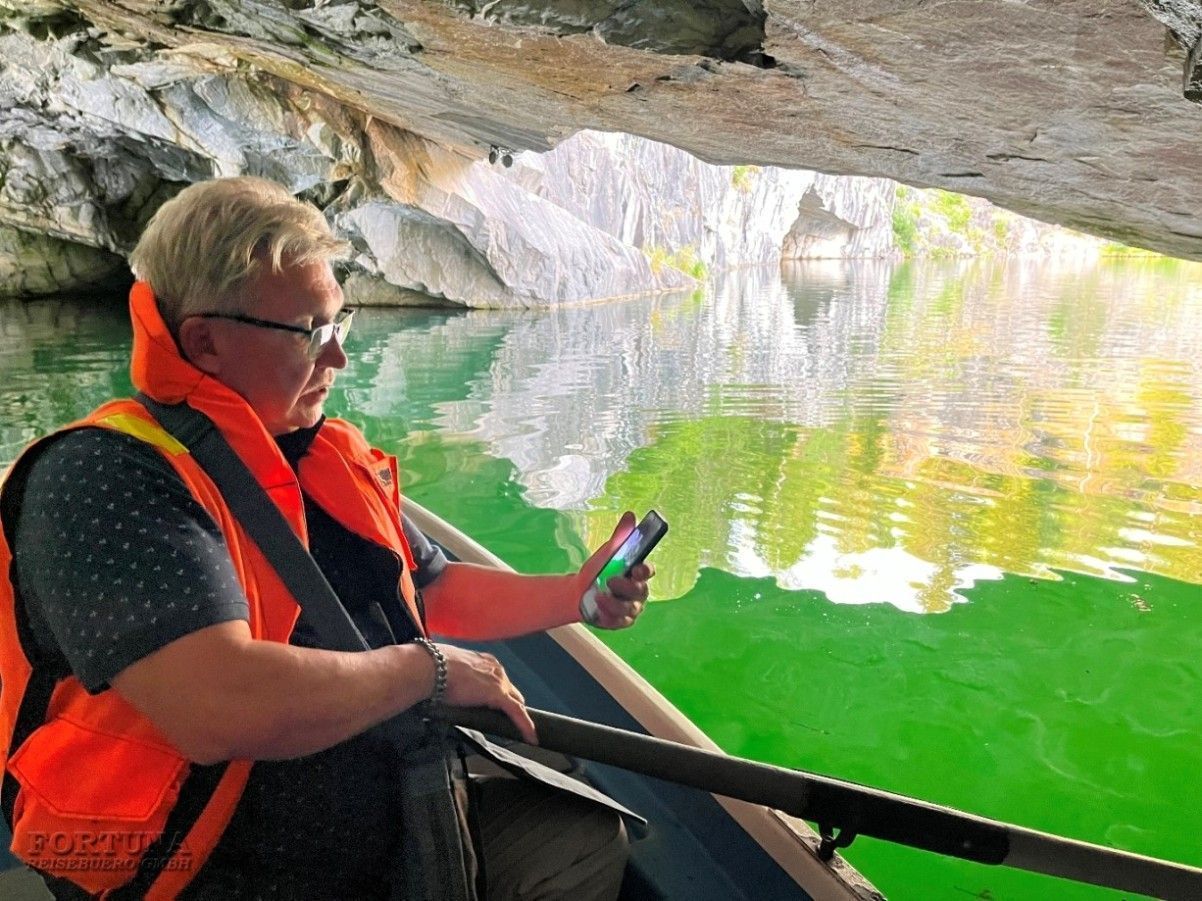 Посещение парка начнется с экскурсии с местным гидом, которая посвящена истории Рускеалы в качестве памятника горного дела России и Финляндии. Вас проведут по штольням и пещерам, и покажут самые красивые видовые площадки.