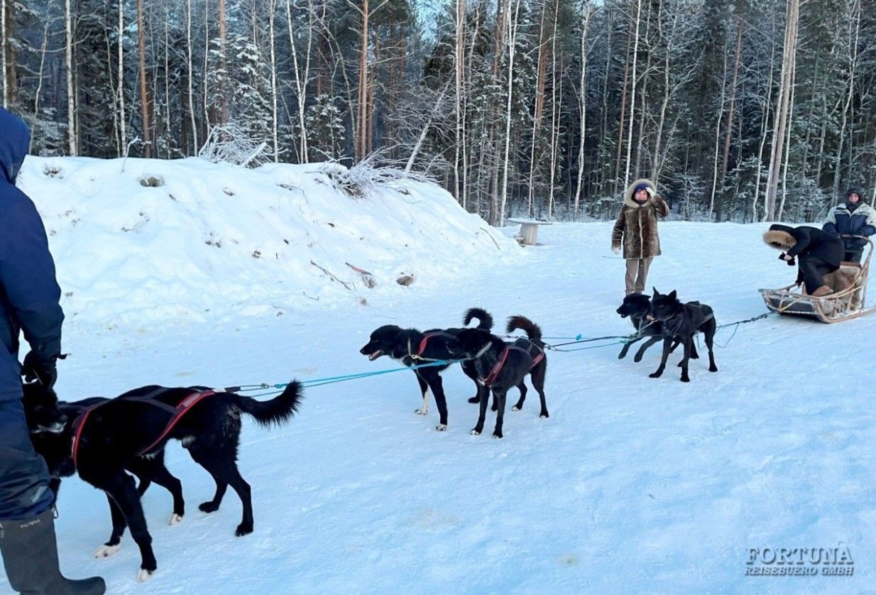 - Питомник хаски - после обеда вас ожидает самый большой в России питомник ездовых собак. Вы познакомитесь и обязательно подружитесь с сибирскими и с аляскинскими хаски, сфотографируетесь со снежно-ослепительным самоедом и большим аляскинским маламутом, попробуете себя в дог-трекинге и понаблюдаете за жизнью целой деревни беговых собак. Море позитива и яркие фотографии на память вам гарантированы!