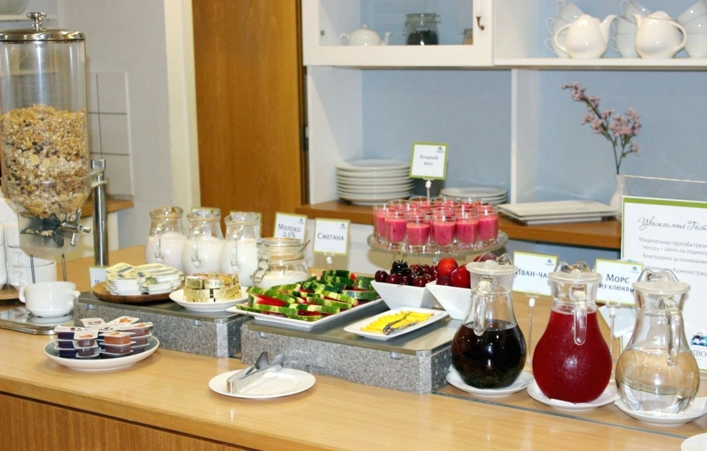 Завтрак по системе «шведский стол» включён в стоимость номера. Каждый день на завтрак предлагается более 30 блюд: каши, хлопья и мюсли, сосиски и бекон, блинчики, запеканки и омлеты, рыба, разнообразные салаты, свежие фрукты и овощи, мясные и сырные нарезки, супы, карельская выпечка, кофе и чай, молоко, йогурты, соки, карельские морсы и даже игристое вино. Скидка 10% на всё меню ресторана «Карелия» (кроме алкоголя, бизнес-ланчей, room service и кофе с собой);