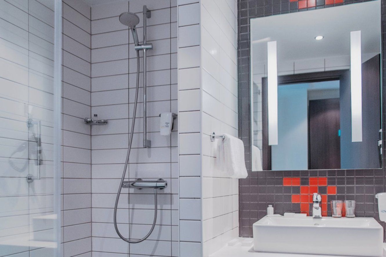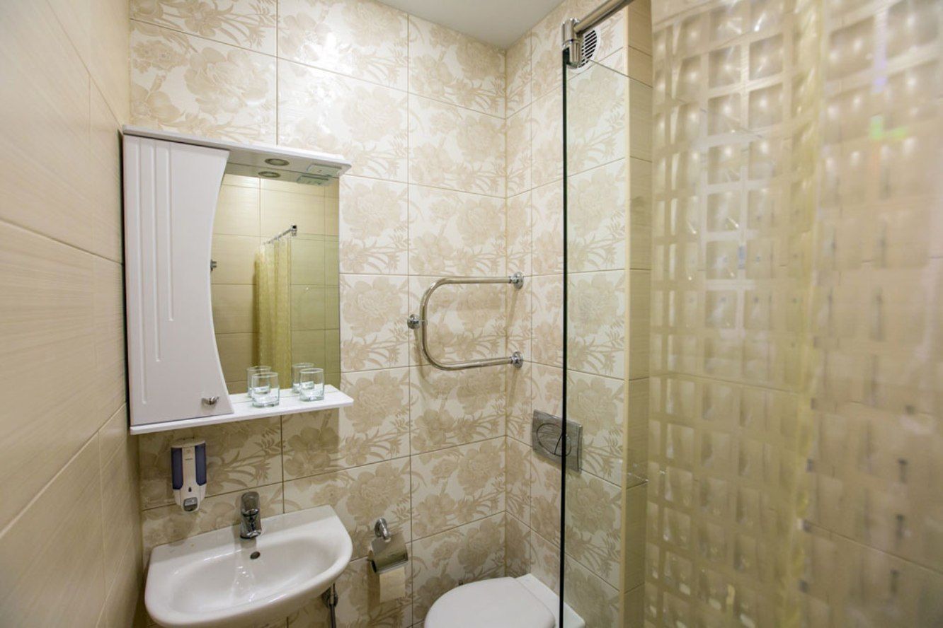 Ванная комната: с бесплатными туалетными принадлежностями, раковина, душевая кабина, санузел, тапочки, банные полотенца, гигиенические и косметические средства.