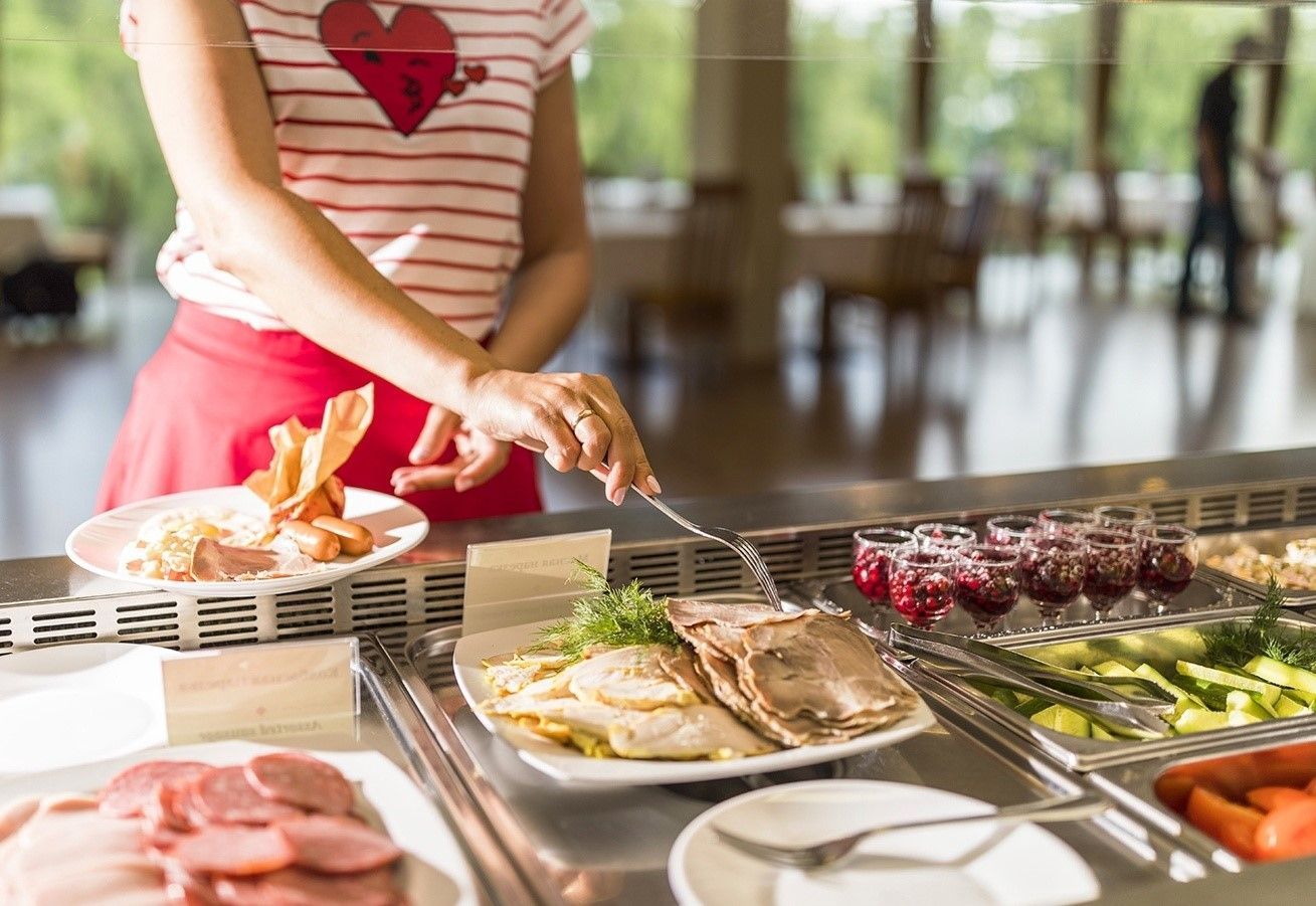 Завтрак по системе «шведский стол» включён в стоимость номера. Каждый день на завтрак предлагается более 30 блюд: каши, хлопья и мюсли, сосиски и бекон, блинчики, запеканки и омлеты, рыба, разнообразные салаты, свежие фрукты и овощи, мясные и сырные нарезки, супы, карельская выпечка, кофе и чай, молоко, йогурты, соки, карельские морсы и даже игристое вино. Скидка 10% на всё меню ресторана «Карелия» (кроме алкоголя, бизнес-ланчей, room service и кофе с собой);