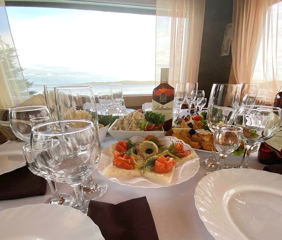- лучший рыбный ресторан в Петрозаводске с панорамным видом на Онежское озеро. Северная свежая местная рыба, так как улов поставляется прямо с корабля. Беломорские мидии в винном соусе, стейк палтуса или зубатки, карпаччо из трески, испанский суп из морепродуктов, воздушные котлетки из щуки с ягодным соусом, филе трески с соусом из гребешка, уха по-карельски из трески и горбуши, мурманская камбала в чесночном масле. Также в меню есть и мясные блюда - жаркое из оленины с грибами - меню гостиничного ресторана продумано до мелочей.