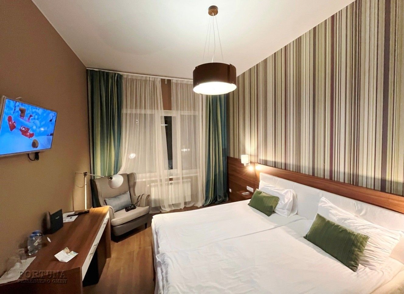 гости отеля размещаются в чистых и уютных номерах площадью 23 кв.м., в которых одна или две раздельные кровати для размещения двух посетителей. Услуги и удобства: телевизор с плоским экраном, доступ к сети WI-FI, мини бар, сейф, телефон, утюг, рабочий стол, отопление, душ, туалет, фен. Завтрак включен в стоимость номера.
