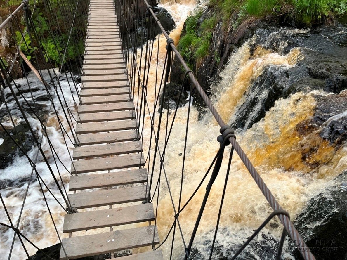 15:00 - Рускеальские водопады Ахвенкоски. Водопады Ахвенкоски, небольшие, но живописные каскады на лесной реке Тохмайоки, привлекли в свое время многих кинорежиссеров: здесь проходили съемки знаменитых кинофильмов "А зори здесь тихие…" и "Темный мир".