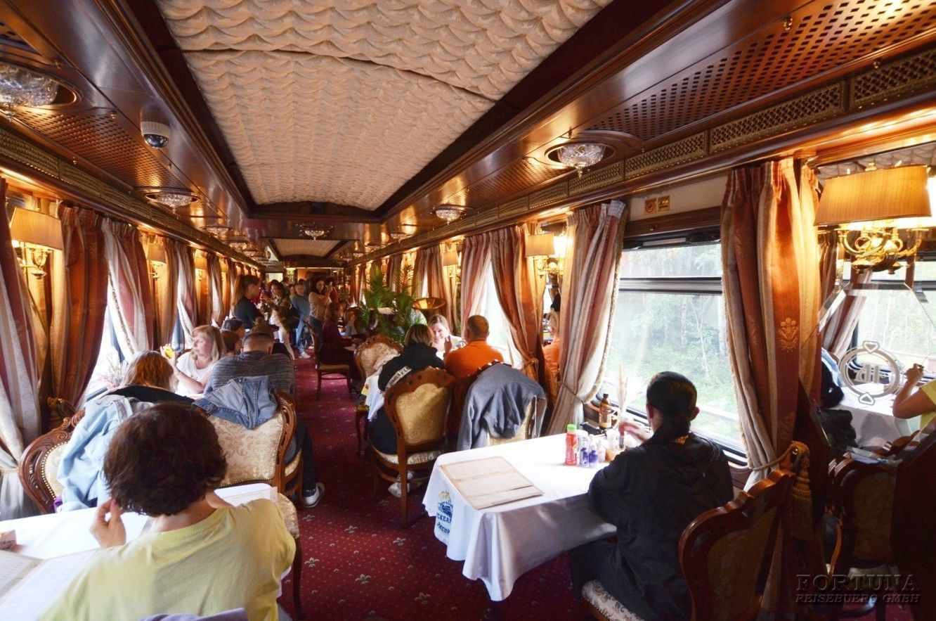 Интерьеры вагонов купе и ресторана старинного паровоза выполнены в стиле «Николаевского экспресса» конца XIX - начала XX веков. Тщательно восстановленный антураж позволит вам насладиться атмосферой эпохи имперской России, прикоснуться к истории не только в парке, но ещё по пути к нему!