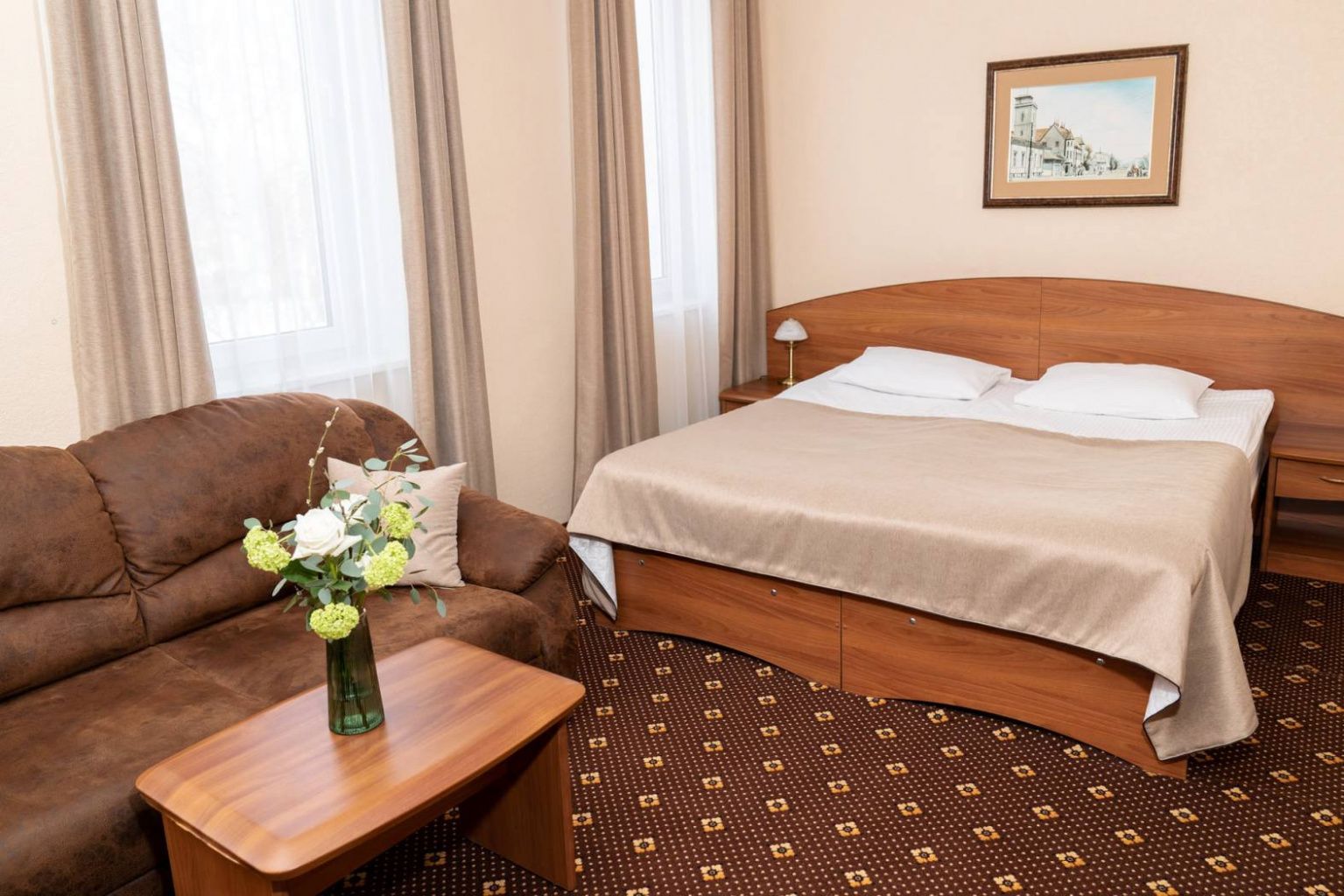 В номерах: двухспальные кровати категории кинг-сайз (160×200), шкаф, прикроватные тумбы, прикроватные бра, письменный стол, стул, смарт-тв, чайная станция, холодильник. Ванная комната: ванна, в некоторых номерах душ, раковина, унитаз, зеркало, фен, косметика для душа, набор полотенец. Во всех номерах и ванных комнатах полы с подогревом. Во всех номерах есть световые зоны. На всей территории отеля предоставляется бесплатный wi-fi.