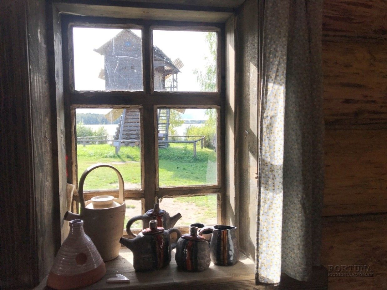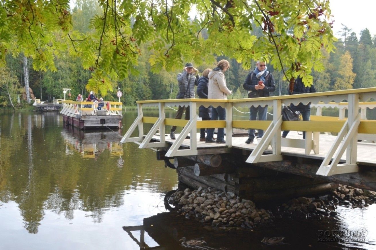 По дороге автобус совершит остановку в деревенском комплексе "Фермерская усадьба", расположившимся на берегу реки Оять. У вас будет время, чтобы позавтракать в трапезной перед дорогой, но обратите внимание на ассортимент магазина фермерских продуктов. Здесь продаются вкусные сувениры, которым ваши родные и близкие будут очень рады: копченая и соленая рыба, наливки и настойки на ягодах, хлеб и выпечка, фермерские молочные продукты, соленья и варенья.