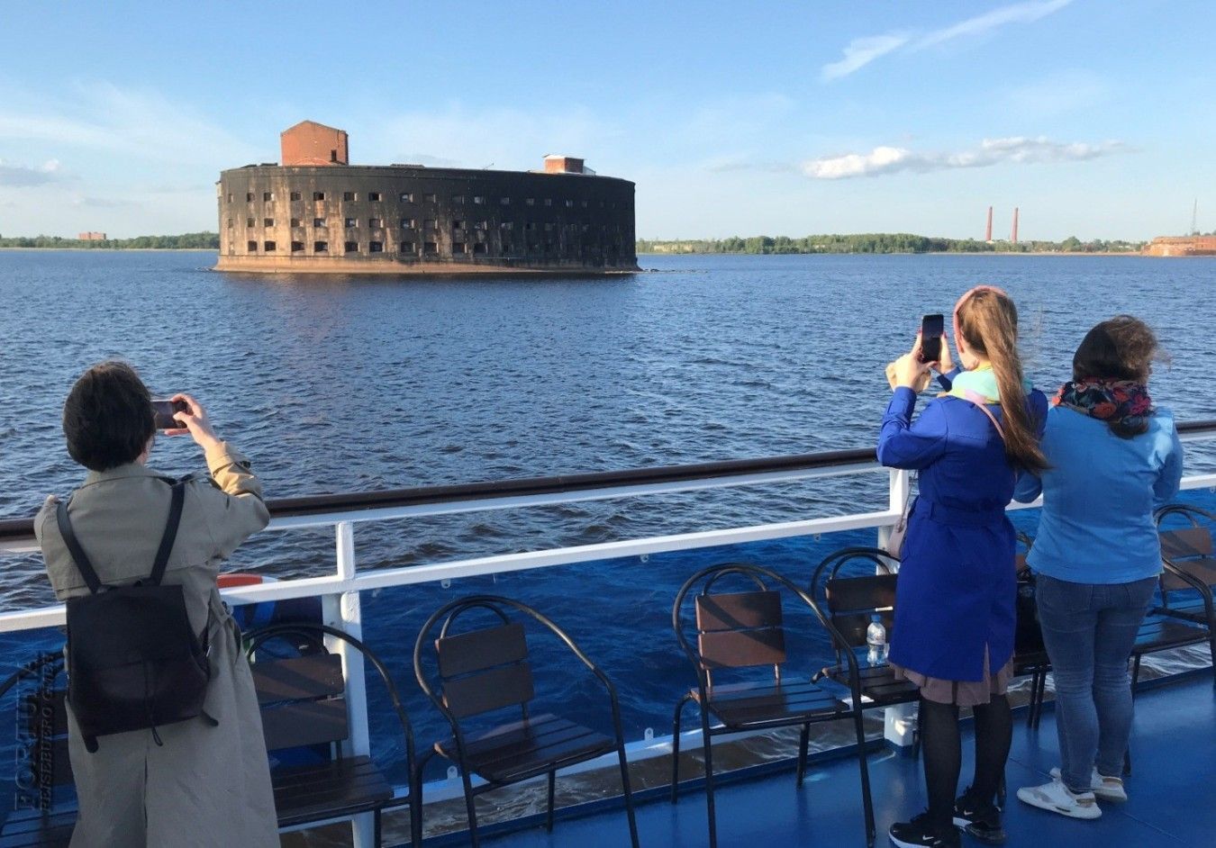 За дополнительную плату предлагается морская прогулка к фортам Кронштадта.