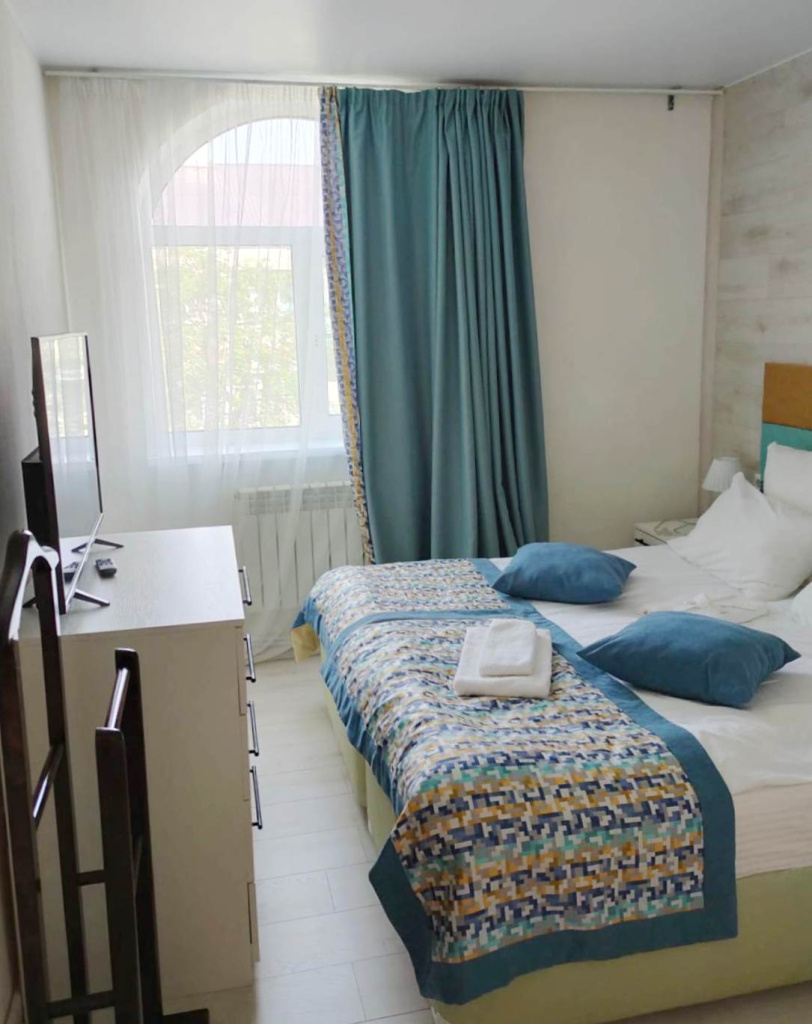 Стандартный номер: Площадь 18 кв.м. Номер состоит из одной комнаты и небольшой прихожей Номер оборудован современной удобной мебелью. В номере имеется: две 1.5-спальные кровати, две тумбочки, рабочий стол, ковровая дорожка. В номере есть туалетная комната с душем. Номер рассчитан на проживание двух человек.
