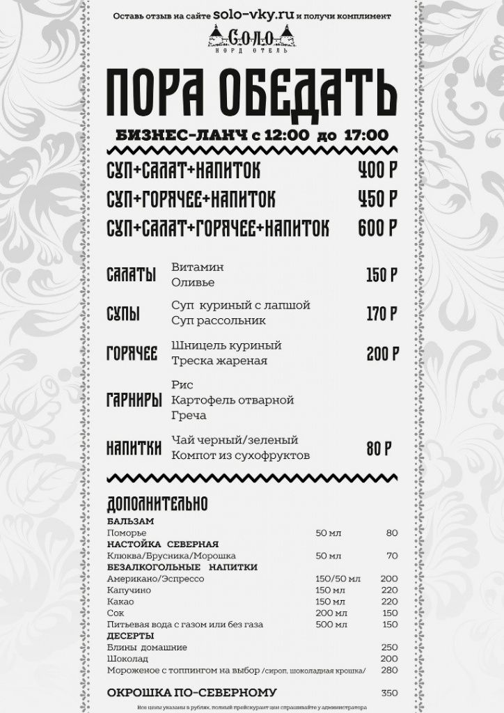 | "Соловки - отель" | 90 700 руб. | 77 800 руб. | 41 100 руб. |