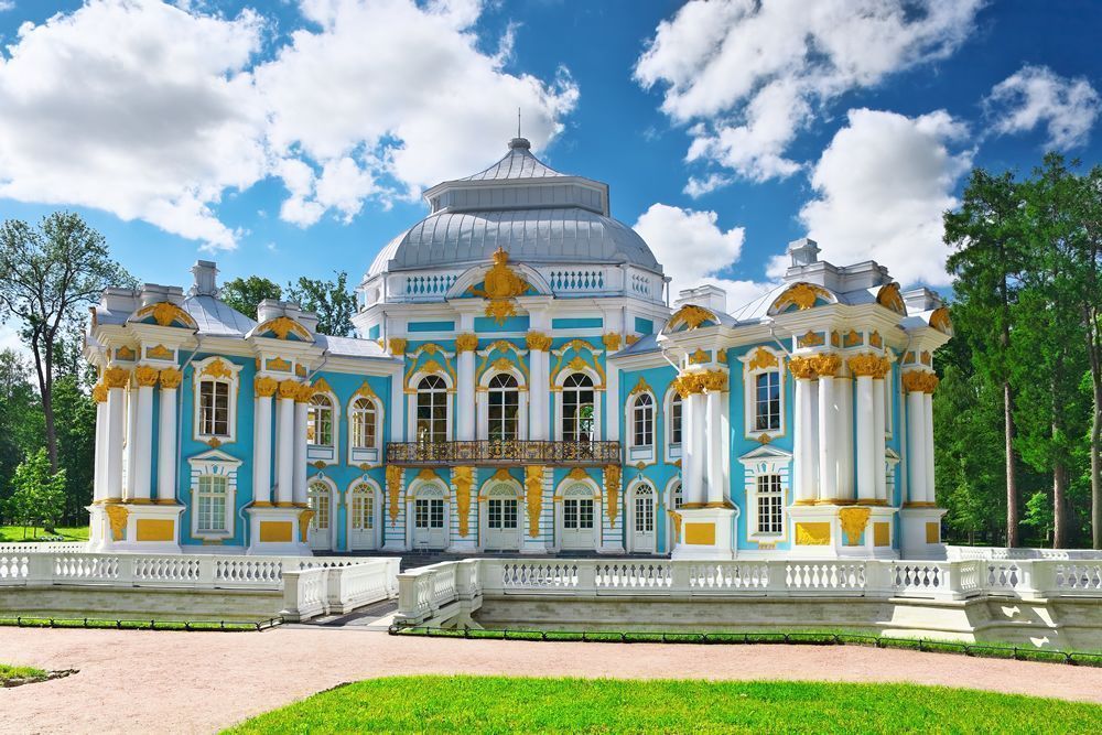 Царское Село – дворцово-парковый ансамбль XVIII-XIX веков, главной частью которого является Екатерининский парк с дворцом и павильонами. Это официальная летняя резиденция трех российских монархов – Екатерины I, Елизаветы Петровны и Екатерины II. Дворец был заложен в 1717 году по приказу императрицы Екатерины I, в честь которой и получил название. В течение XVIII века неоднократно перестраивался и в современном виде представляет образец позднего барокко.