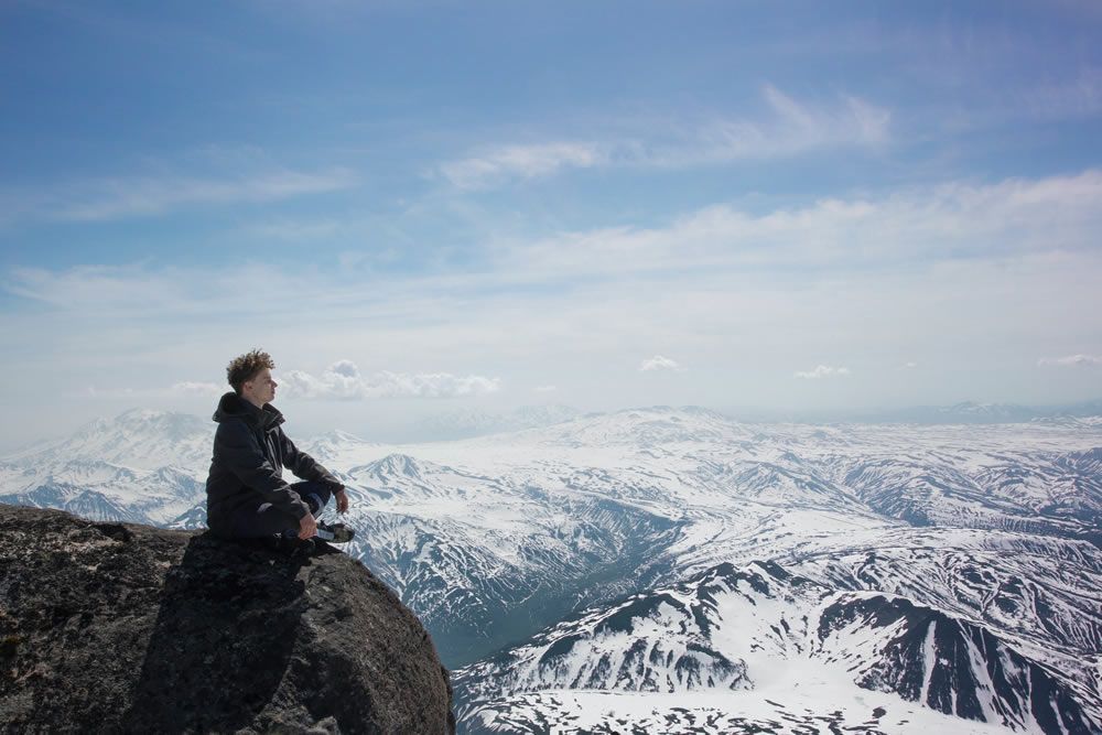 Чудесный круговой осмотр окрестностей с вершины сопки. Отсюда открывается вид на Тихий океан с одной стороны и вулканы Жупановский, Корякский, Козельский с другой.