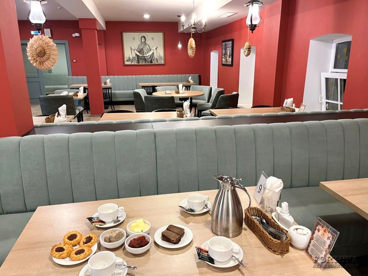 К услугам гостей в здании бывшей Женской трапезной обустроены два обеденных зала с кухней, отвечающей всем современным требованиям.