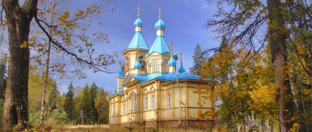 Экскурсия "Никольский скит". Один из самых красивых скитов Валаама: отреставрированный шатровый храм, белоснежный келейный корпус, яблоневый сад и массивный гранитный поклонный крест смотрятся гармонично и уютно.
