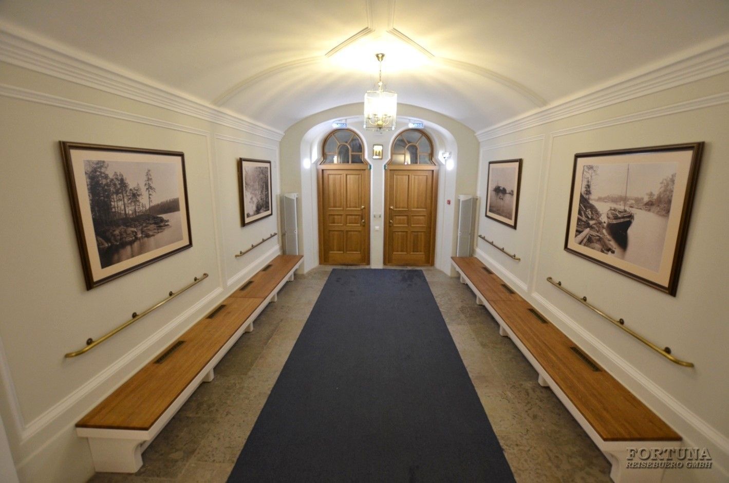 Современный интерьер дополнен репродукциями и фотографиями Старого Валаама, в том числе из финского архива Ново-Валаамского монастыря, а также живописью и графикой современных художников, которые, как и в старые времена, приезжают на остров, чтобы запечатлеть его неповторимую красоту.