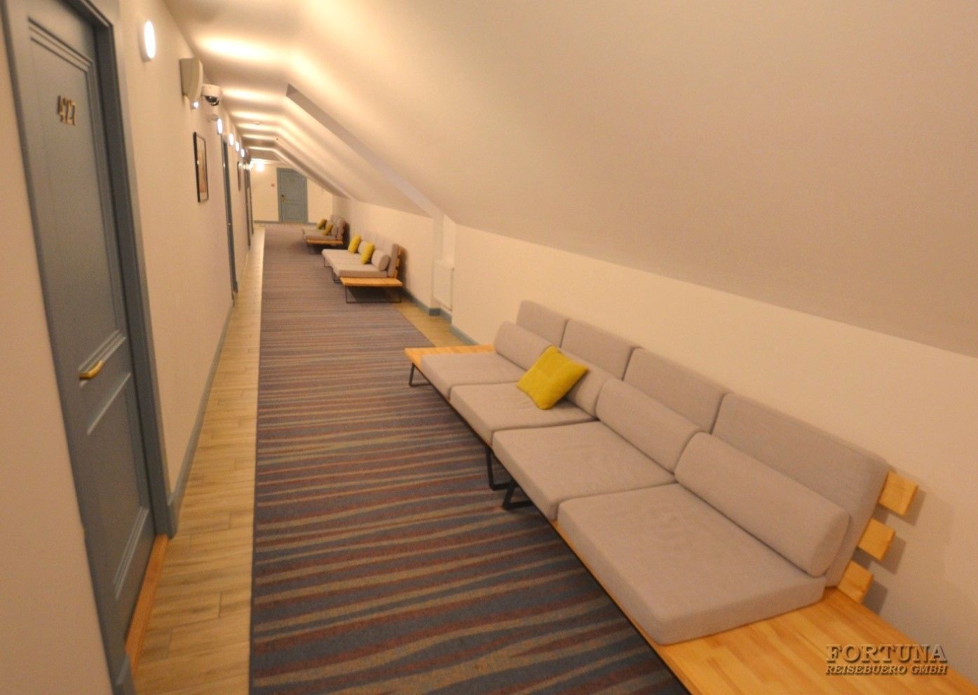 На первом этаже располагаются номера для размещения людей с ограниченными возможностями, в которых предусмотрены большие пространства для свободного перемещения по комнате, поручни в ванной комнате и покрытие без ступеней.