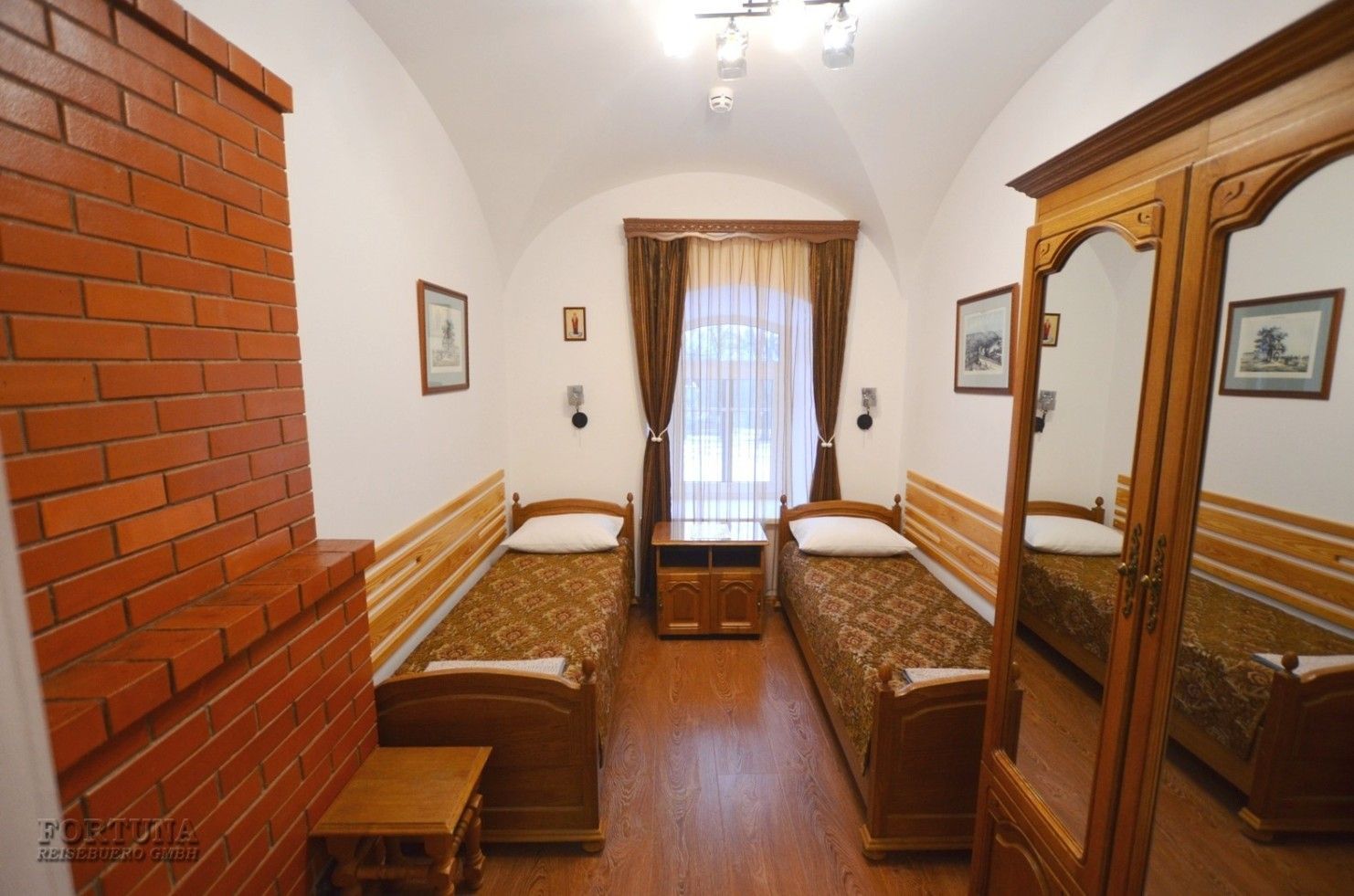 Из окон монастырской гостиницы "Дом паломника" отрывается вид на монастырь, поля, сады или вековые лиственницы. Входы в здание обеспечены пандусами и подъемником.
