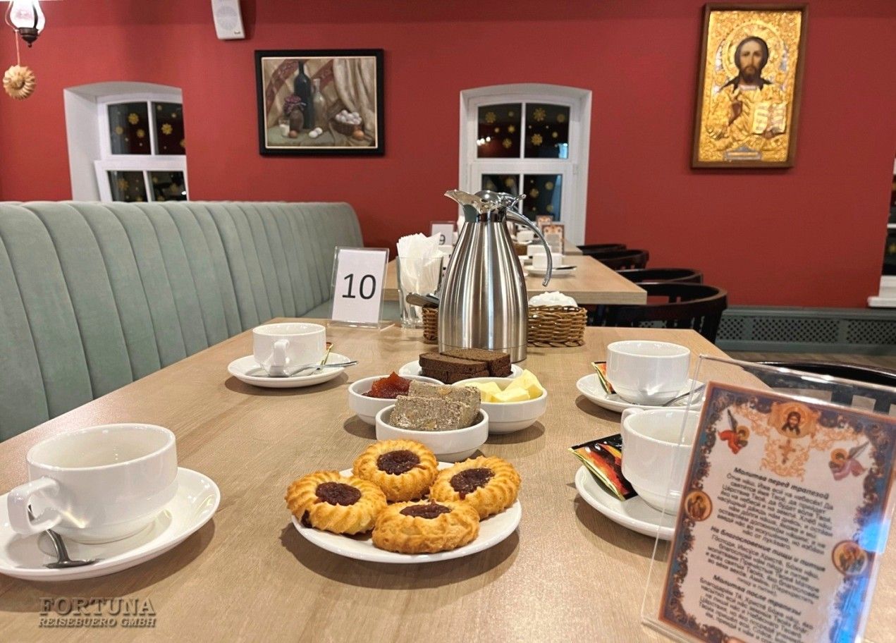 К услугам гостей в здании бывшей Женской трапезной обустроены два обеденных зала с кухней, отвечающей всем современным требованиям.