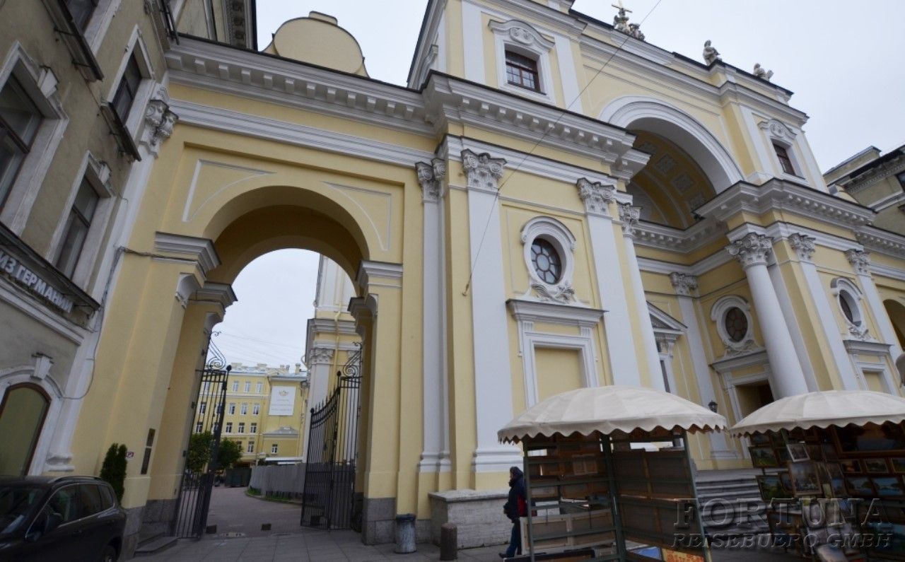 Гостиница расположена на территории Базилики Св. Екатерины Александрийской, одного из старейших католических храмов России, в самом сердце города на Невском проспекте, дом 32-34. Из ряда номеров открывается неповторимый вид на храм.