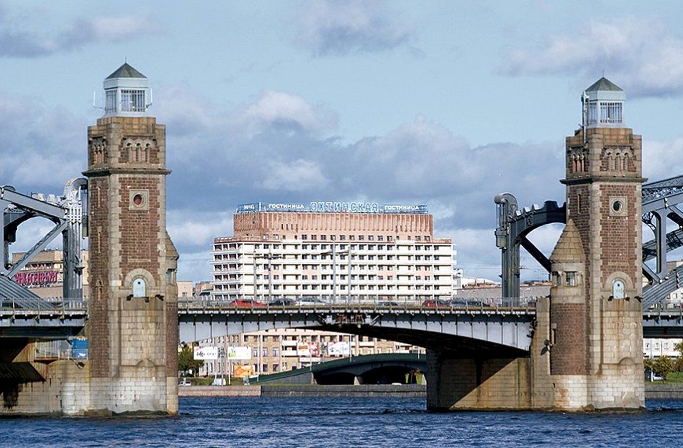 Гостиница: Охтинская - одна из крупнейших 3-звездочных гостиниц в Санкт-Петербурге. Из окон номеров и холлов отеля открывается великолепный панорамный вид на Неву, ансамбль Смольного собора и три моста, один из которых мост Петра Великого (Большеохтинский мост).