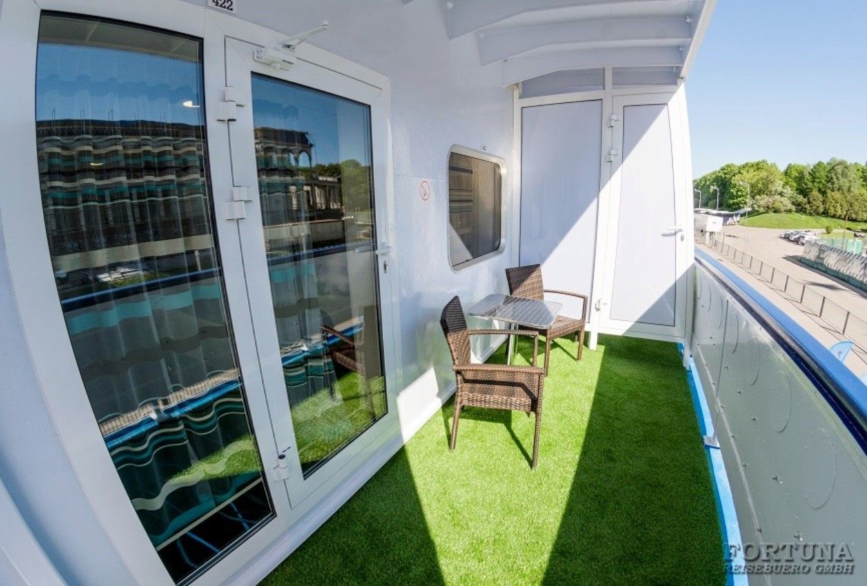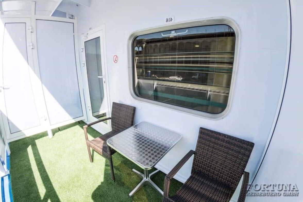 Индивидуальный балкон: персональный балкон с мебелью - стол и стулья для отдыха, выход через стеклянную дверь из каюты. По желанию, коннект-балконы могут быть открыты для общения с пассажирами соседних кают.
