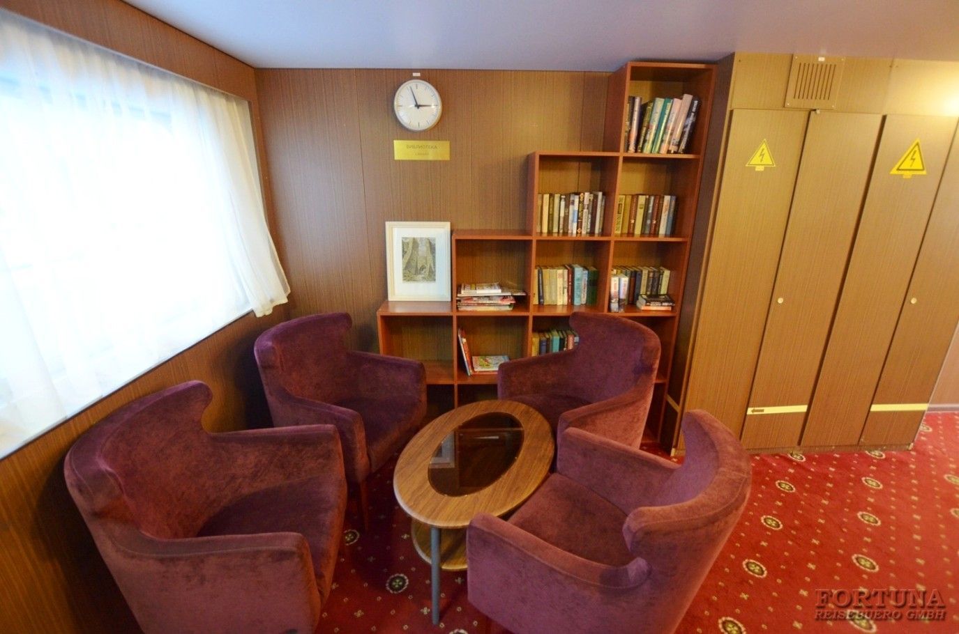 Тематика книг в этой библиотеке – немного ограниченная. От художественной литературы до развлекательных романов. Каждый желающий может взять книгу, прочитать и вернуть её на полку следующим читателям – пассажирам теплохода. Пожалуйста, не забирайте с собой понравившиеся издания. Библиотека будет безумна рада получить книги в подарок.