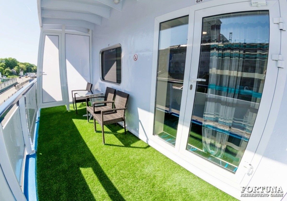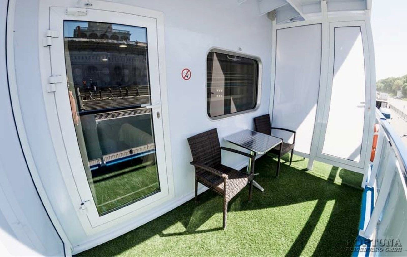 Индивидуальный балкон: персональный балкон с мебелью - стол и стул для отдыха, выход через стеклянную дверь из каюты. По желанию, коннект-балконы могут быть открыты для общения с пассажирами соседних кают.