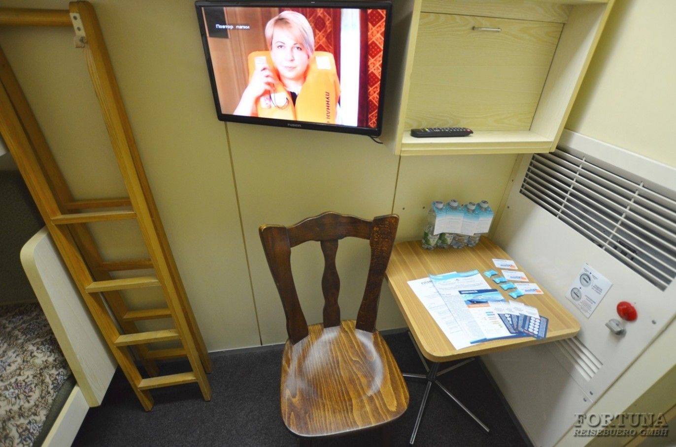 Также к услугам пассажиров: фен, щетка для одежды и пледы для каждого пассажира. Для удобства подъёма на верхние полки предлагается дополнительная лестница-трап.