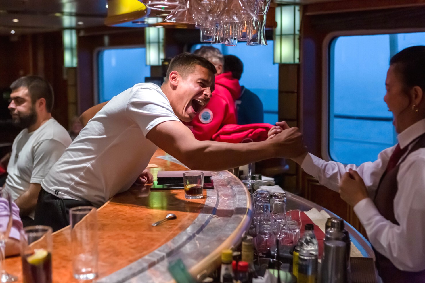 Бар – отличное место для общения с новыми друзьями. Продегустируйте французские, итальянские и чилийские вина, одновременно наслаждаясь видами Антарктиды. В ассортименте бара вы также найдете большой выбор алкогольных напитков: виски, джин, ром и другие. Здесь вы сможете попробовать богатый ассортимент алкогольных и безалкогольных напитков - в некоторых случаях предлагаются напитки с охлаждением из векового льда! Бар работает до позднего вечера. Круизы на лайнере Си Спирит – судно ледового премиум-класса это экспедиция, отдых и наслаждение!