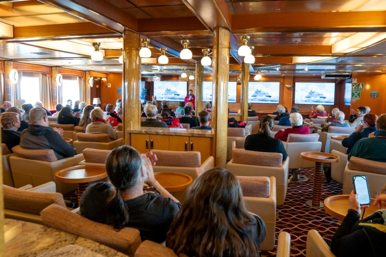 OCEAN DECKБрифинги, лекции и презентации, проводимые в лекционном зале, помогут вам стать настоящими экспертами в мире Арктики и Антарктиды. Современное техническое оснащение делает образовательную часть нашей экспедиции еще более информативной и красочной. Лекции на борту посвящены различным темам: геологии и животному миру пролива Дрейка, жизни пингвинов в Южном океане и сохранению популяции китов. Здесь часто проводятся встречные и прощальные коктейли.