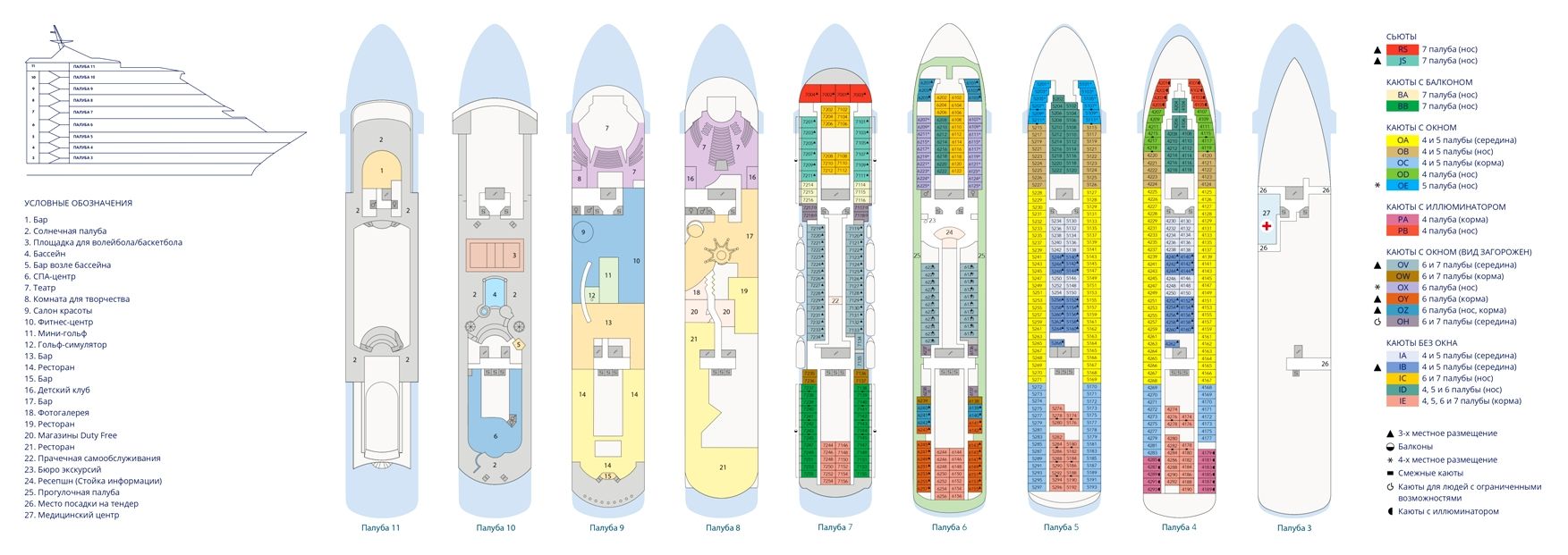 - Некоторые каюты одной категории могут немного отличаться по размеру;