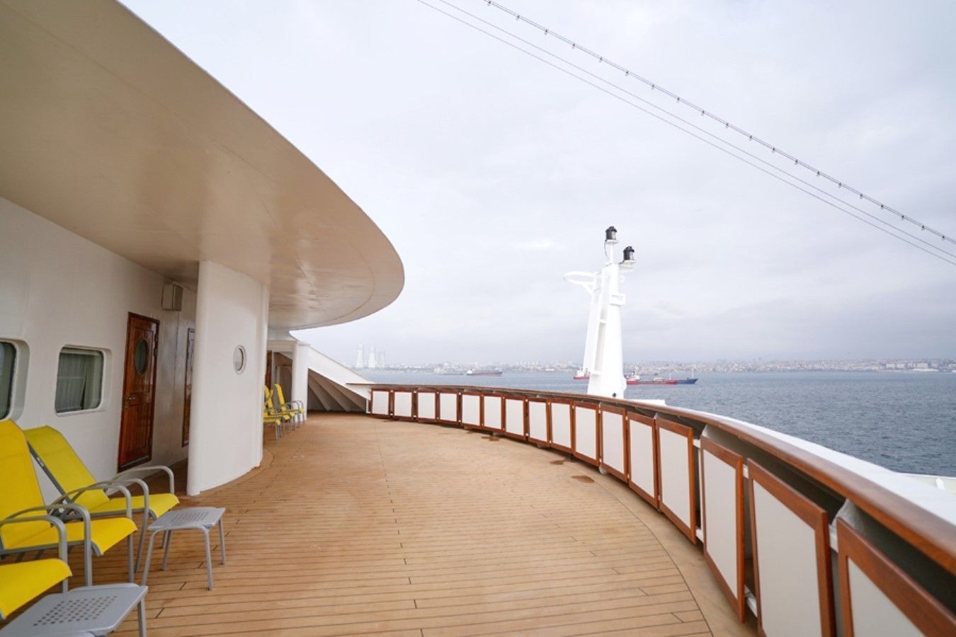 - Большая солнечная палуба с зонами отдыха и шезлонгами;